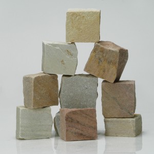 Piscina realizzata in cubetti di Quarzite Brasiliana gialla, bordo piscina realizzato in Quarzite Brasiliana Gialla.