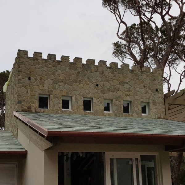 Rivestimento in Pietra di Langa retrosegata, spessore sottile e pratica nella posa simula un effetto di muratura in blocchi.