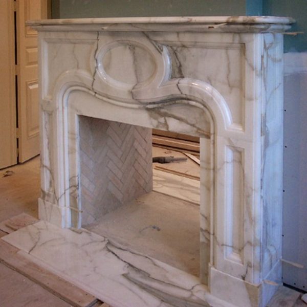 Rivestimento per camino in Marmo Bianco di Calacatta realizzato a mano dai nostri esperti artigiani;